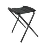 A estrutura da banqueta é toda em aço, garantindo robustez e estabilidade, enquanto o tecido utilizado, tanto na banqueta quanto na mochila, é o poliéster do tipo Oxford 600D, conhecido por sua resistência e durabilidade.