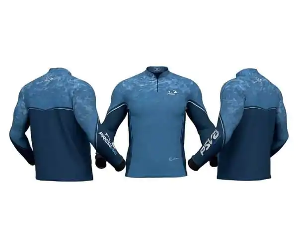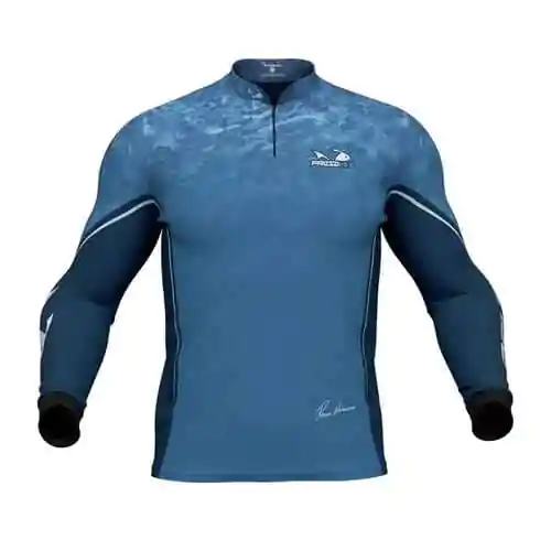 Camiseta sublimada Presa Viva Tecnologia Dry, que proporciona máximo conformo térmico durante a atividade, modelo raglã manga longa, fechamento com zíper.