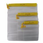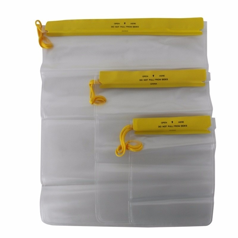 Cada embalagem do Conjunto de Bolsas Impermeáveis da Nautika vem com 3 unidades, uma de cada tamanho, para que você possa fazer uma melhor organização de acordo com o tamanho de seus pertences.