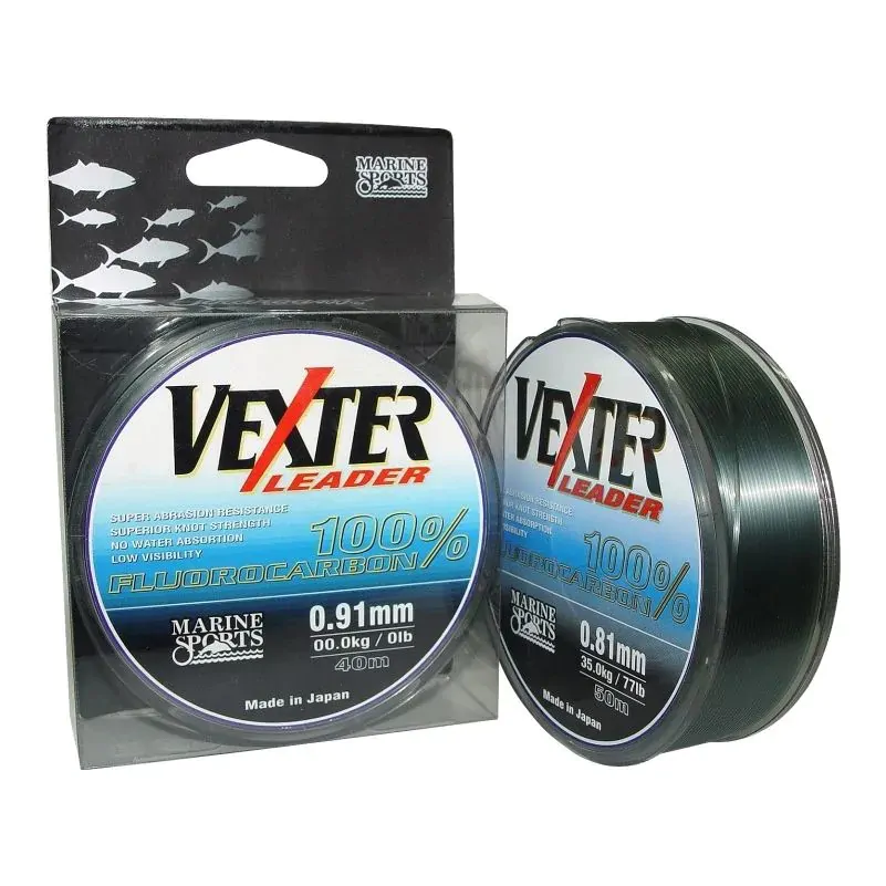 Produzida com 100% fluorcarbono, a linha Vexter Leader é indispensável para ser atada como leader principalmente nas linhas de multifilamento. Na hora da briga com o peixe é normal ocorrer um raspagem, mesmo que bem superficial, da linha com o corpo do peixe, o que romperia facilmente uma multifilamento. Já a resistência à abrasão da fluorcarbono é muito superior até mesmo ao nylon comum.