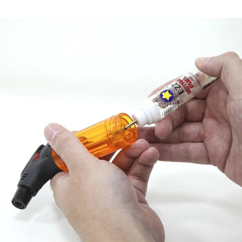 1. Antes de usar, abasteça o tanque do mini maçarico com 20g de gás butano