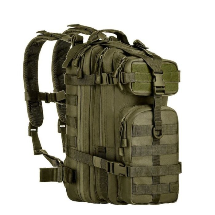 A Mochila Tática Assault – Verde Oliva é compacta e funcional. Seu formato garante mobilidade ao usuário sem perda de capacidade no armazenamento de equipamentos. Possui diversos compartimentos e organizadores que auxiliam em operações táticas e no dia a dia.