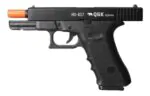 Produto novo, nota fiscal em nome do comprador e 90 dias de garantia. Pistola De Airsoft Spring Mola – HS G17 6mm – QGK. A pistola Spring HS G17 6.0mm – QGK é uma pistola compacta fabricada pela QGK. Um verdadeiro item de colecionador. QGK chega com mais um lançamento para airsoft na parte spring’s, sendo uma arma de excelente qualidade e custo beneficio. Esta pistola possui sistema a mola (spring), travas funcionais e retém do ferrolho funcional, o que amplia o realismo deste produto. Seu magazine é construído em metal e possui capacidade de 18 bbs.