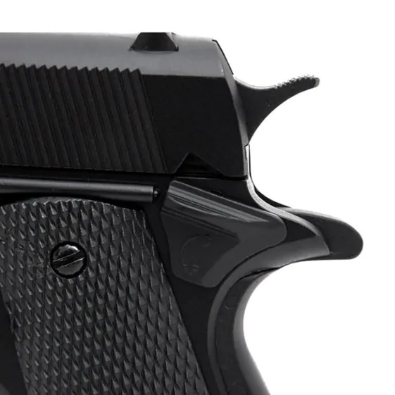 Com sistema Spring, a GFM311 Colt 1911 é uma pistola com modo de disparo manual tiro a tiro. Ou seja, um novo acionamento deve ser feito a cada tiro, puxando o slide para trás. Lembrando que o slide possui trava de segurança, evitando a realização de disparos.